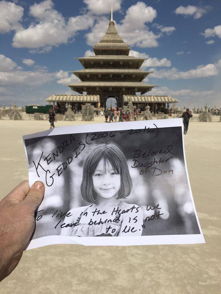 I went to burning man this year for the first time and did something for you in memory of your daughter while I was there. Saturday night they burn the sculpture of the man, Sunday night however they burn a temple that's filled with memories and tributes to loved ones lost over the past year.