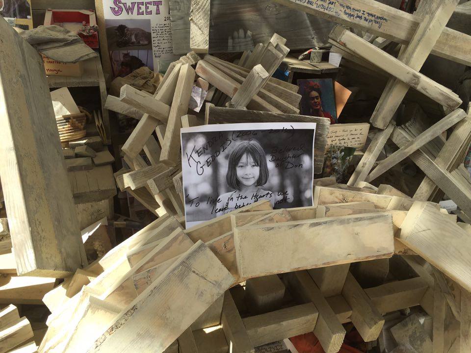 It's essentially a giant shrine filled with photos, artifacts and tributes of those who've crossed over before the rest of us. When they set it on fire, it's powerful and 50,000 humans sit in a silent circle and watch it till the moment is collapses. I put this picture of Kendra in there hoping that the universe would grant you some comfort during this time of your life.